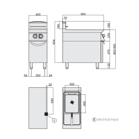 - напольная фритюрница на закрытой подставке с регулируемыми ножками от 855 до 900 мм;