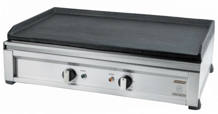 Электрический гриль предназначен для жарки мяса, птицы, рыбы, овощей, а также для приготовления стейков, гамбургеров и горячих сэндвичей на предприятиях пищевой промышленности, общественного питания и торговли. Модель оснащена открытой плоской жарочной поверхностью с боковыми и задним бортами, устойчивыми нескользящими опорами и электромеханической панелью управления. Корпус выполнен из нержавеющей стали, жарочная поверхность – из чугуна.