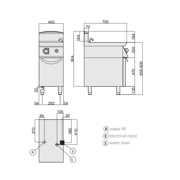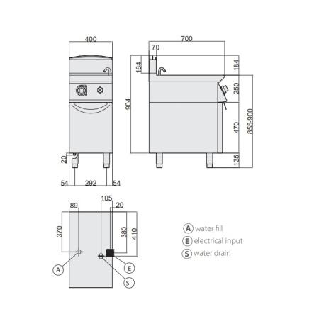 - макароноварка на закрытой подставке с регулируемыми ножками от 855 до 900 мм;