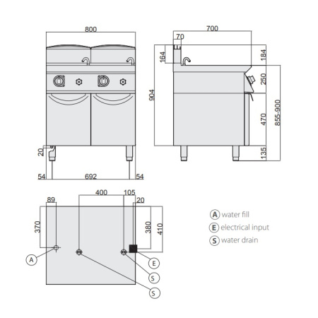 - макароноварка на закрытой подставке с регулируемыми ножками от 855 до 900 мм;