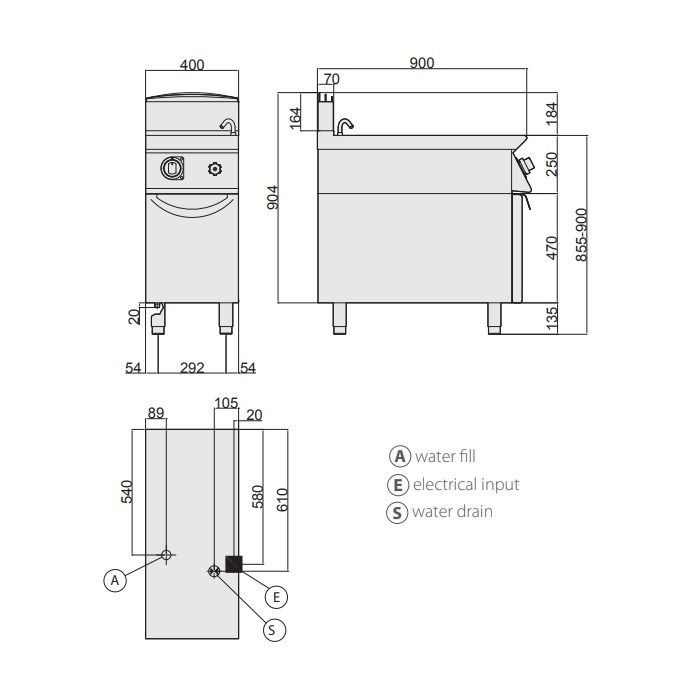 - макароноварка на закрытой подставке с регулируемыми ножками от 855 до 900 мм;