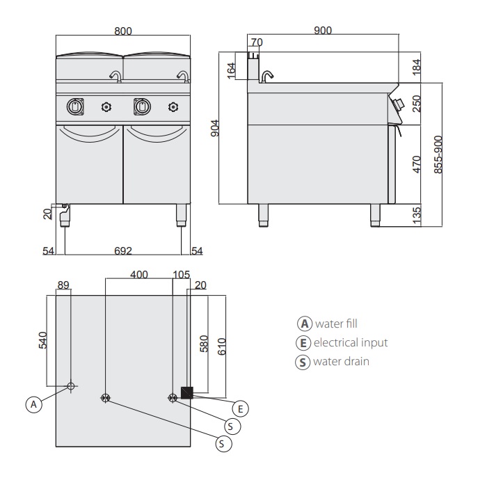 - макароноварка на закрытой подставке с регулируемыми ножками от 855 до 900 мм;