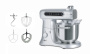 Миксер оснащен 7-литровой дежой с четырьмя насадками, которые можно мыть в посудомоечной машине: крюком для взбивания, лопаткой, силиконовой лопаткой, венчиком из нержавеющей стали.