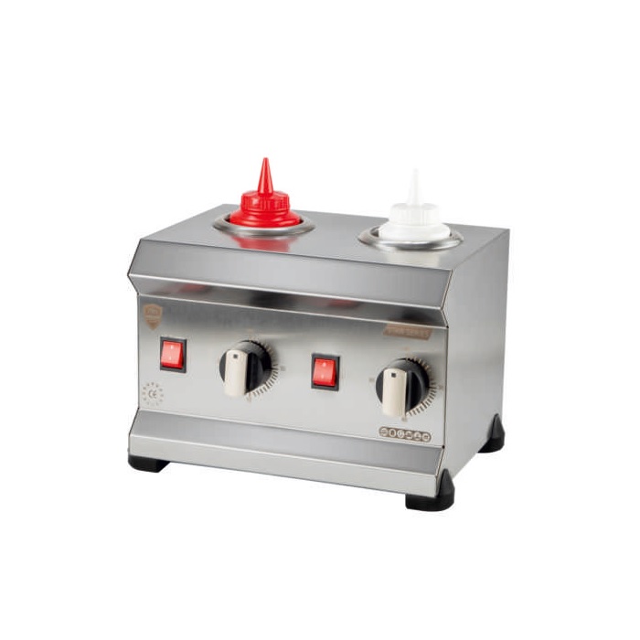 Подогреватель используется на предприятиях общественного питания и торговли для подогрева и поддержания заданной температуры цилиндрических емкостей с соусом. Модель оснащена 2 независимыми зонами нагрева и устойчивыми нескользящими опорами. Корпус выполнен из нержавеющей стали.