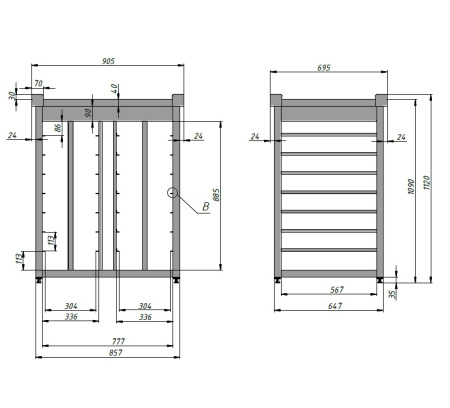 - 2 секции на 7 уровней направляющих под GN1/1;