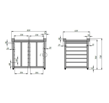 Подставка Gastrolux предназначена для размещения пароконвектомата на 10 уровней Steambox Giorik.