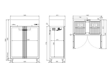 - базовая комплектация: 6 направляющих для GN2/1 полок, 6 полок с пластиковым покрытием GN2/1, замок с ключом;