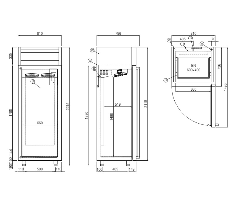Шкаф расстоечный с охлаждением Coldline Vision AF30/1M, 20 уровней 600x400, встроенный агрегат с воздушным охлаждением, вместимость брутто 622 л.