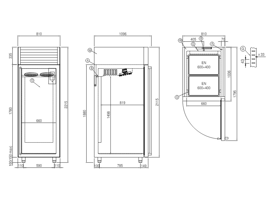 Шкаф расстоечный с охлаждением Coldline Vision AF60/1M, 20 уровней 600x800, встроенный агрегат с воздушным охлаждением, вместимость брутто 947 л.