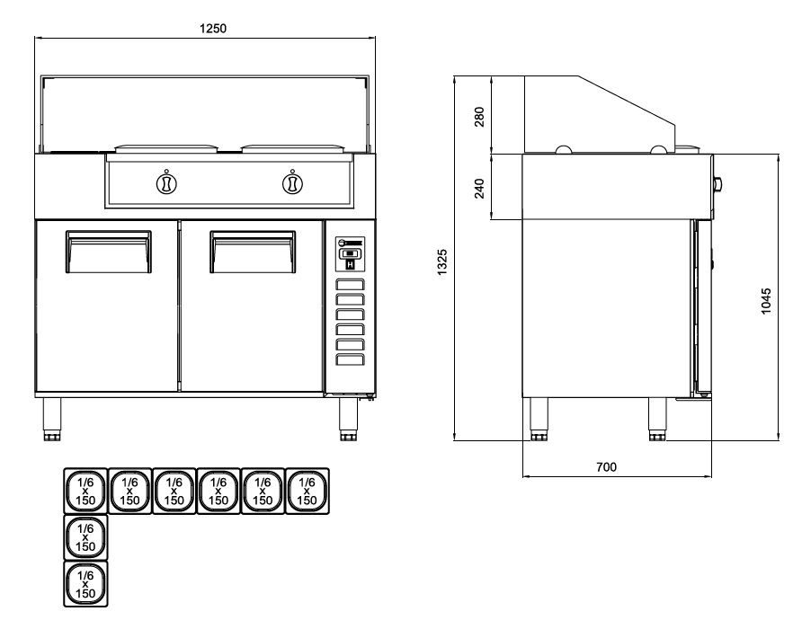 - вместимость 8хGN1/6-150 (гастроемкости не включены);