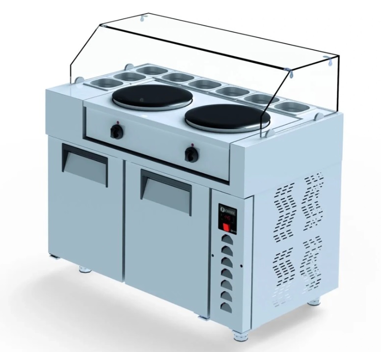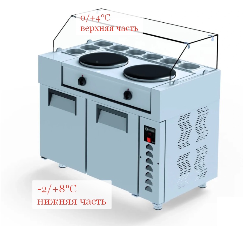 Стол холодильный предназначен для приготовления блюд и кратковременного хранения ингридиентов. Совместим с блинницей.