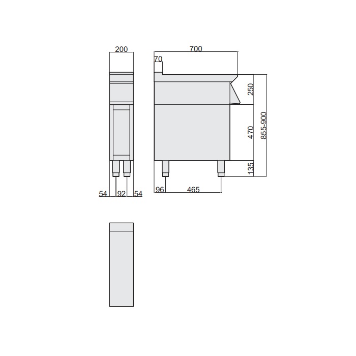 - рабочая поверхность толщиной 1,2 мм с регулируемыми ножками от 855 до 900 мм;