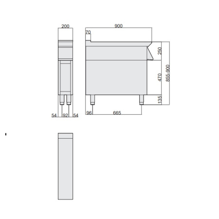 - рабочая поверхность толщиной 1,2 мм с регулируемыми ножками от 855 до 900 мм;