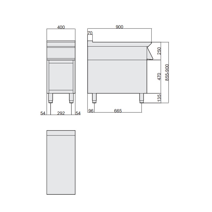 - рабочая поверхность толщиной 1,2 мм с регулируемыми ножками от 855 до 900 мм;
