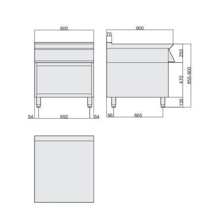 - рабочая поверхность толщиной 1,2 мм с регулируемыми ножками от 855 до 900 мм;