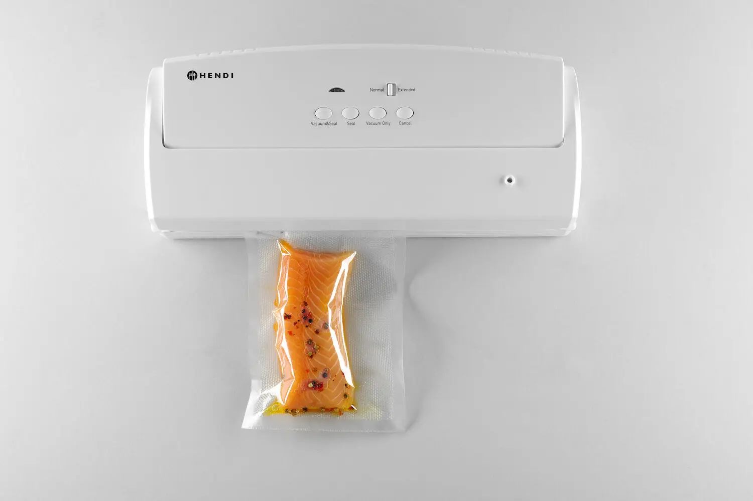 Предназначен для упаковки продуктов питания в вакуум, за исключением жидкостей, для сохранения свежести, предотвращения размножения микроорганизмов и смешивания запахов.