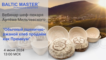 4 июня 2024 в 13-00, пройдёт вебинар "Обычный пшенично-ржаной хлеб продаём как Премиум", где наш шеф-пекарь Артём Мильчевский изготовит пшенично-ржаной хлеб, используя уникальные и креативные формы для хлеба.